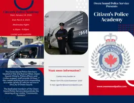 Have you ever wondered what policing in Canada is really like? The Owen Sound Police Service Citizens' Police Academy (CPA) is an opportunity for interested community members to take a deep dive into the world of policing operations here in Owen Sound.