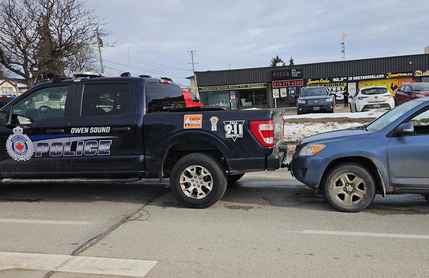 On December 18th, 2025, at approximately 12:20p.m., an Owen Sound Police Service cruiser was struck from behind by another vehicle, while stopped for a red light.